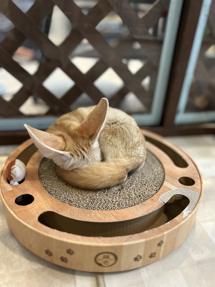 The space strikes a calm, respectful tone toward its animal residents. Unlike many animal cafes that rely on playful gimmicks like dressing up pets, Fairy Room focuses on letting the creatures be themselves, encouraging gentle, mindful interactions. Visitors can expect a range of personalities among the animals — from playful kittens eager for attention to more reserved species like the genet and fox that appreciate quieter moments and minimal handling.